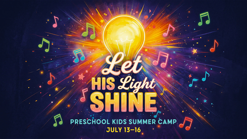 Preschoolers age 3 through completed kindergarten are invited to a joyful week of learning, laughter, and music at Music Camp! Join us from July 13 to 16 as we explore Bible stories, enjoy crafts, games, and singing exciting songs with playful motions. Every activity is designed especially for little learners, helping them discover God's love in a safe and encouraging environment. Families are also invited to a special end-of-week performance in the Worship Center, where the children will share some of the songs they learned during the week.