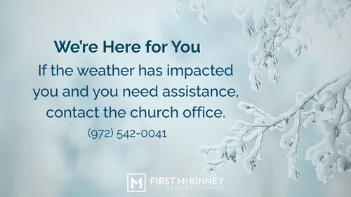 Thank you for joining us today as we gather together as a church family online. While winter weather has closed our campus, it hasn’t closed our hearts or our hope. We’re grateful for the opportunity to worship, pray, and open God’s Word together, no matter where we are. We’re praying for you and your family to stay safe, warm, and well over the coming days. May this time of worship be a reminder that God is present with us, even in moments of disruption and uncertainty.